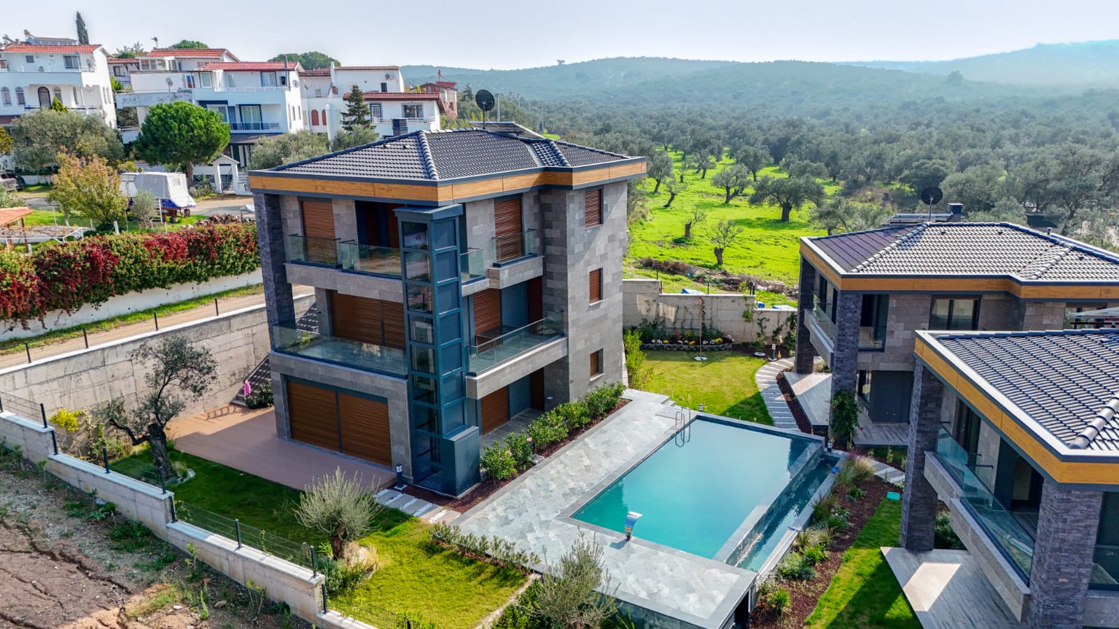 Her köşesinde yüksek kalitenin izlerini taşıyan proje, çevresindeki zeytin ağaçları, huzur veren park alanları, su deposu, güneş panelleri, jeneratörü ve akıllı bina otomasyonu ile sizlere ve ailenize yaz kış huzurla oturabilecekleri akıllı ev teknolojisi sunmaktadır.