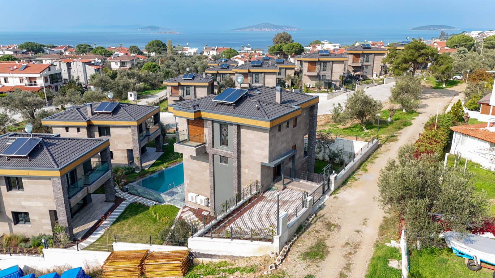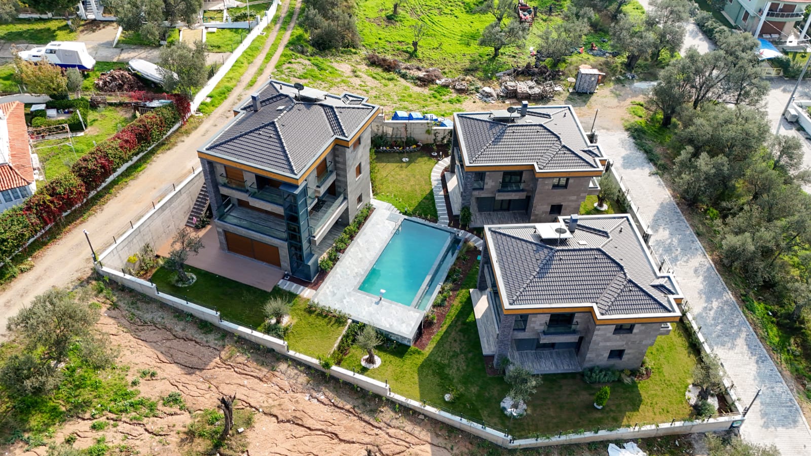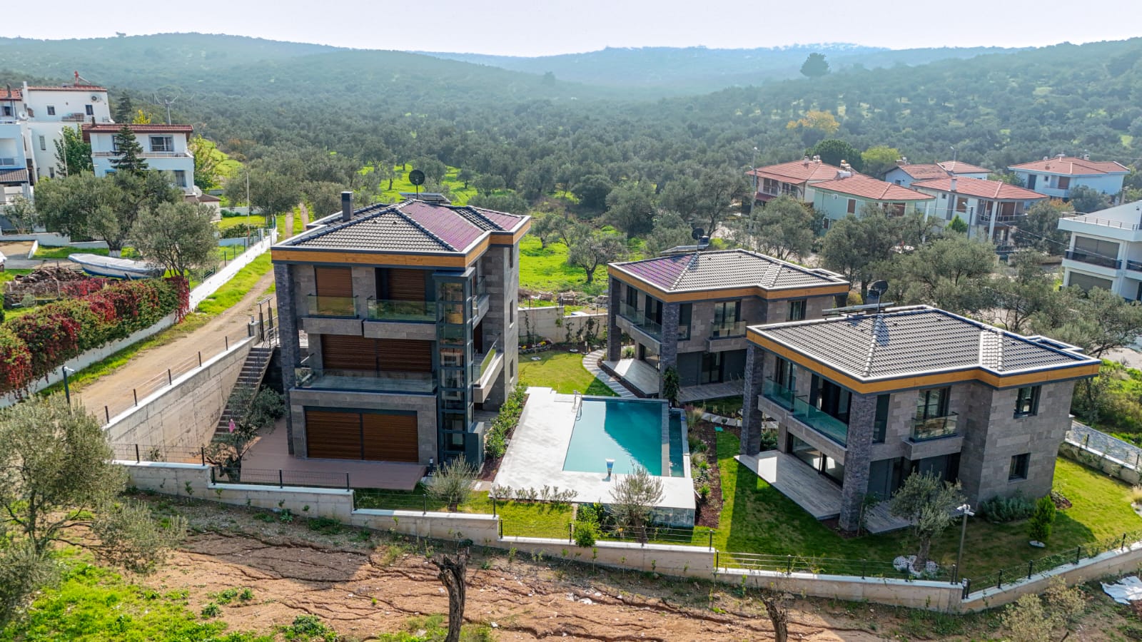 Projede 4 adet triplex, 10 adet dupleks villa mevcuttur. Ortalama her villaya 3 adet asırlık zeytin ağacı düşmektedir.